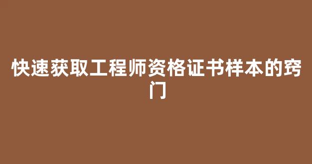 想要快速获取工程师资格证书样本吗?在今天竞争激烈的职场中,拥有工程师资格证书可以为您的职业生涯增添不少亮点。本文将详细介绍如何快速获取工程师资格证书样本的窍门,帮助您在职场中更上一层楼。